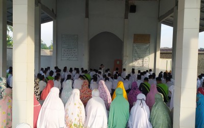 Siswa-siswi MTsN 10 Jember melaksanakan sholat dhuha pukul 06.50 di Musholla AL-Azhar setiap hari guna membentuk karakter yang religius