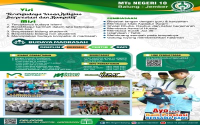 Madrasah Tsanawiyah Negeri (MTsN) 10 Jember merupakan lembaga pendidikan Islam yang tidak hanya berfokus pada pencapaian akademik semata, namun juga berupaya keras m